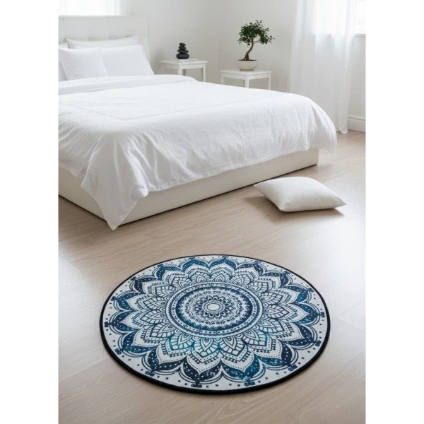 Dale un toque único a tus espacios con estas hermosas alfombras redondas Mandala de 80 cm de diámetro. Ideales para decorar tu hogar, rincón de meditación o altar espiritual.