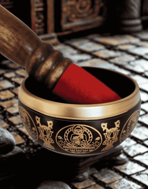 Tip de uso: Golpea suavemente el cuenco o hazlo vibrar con la baqueta alrededor del borde para generar tonos prolongados que invitan a la calma y la concentración.