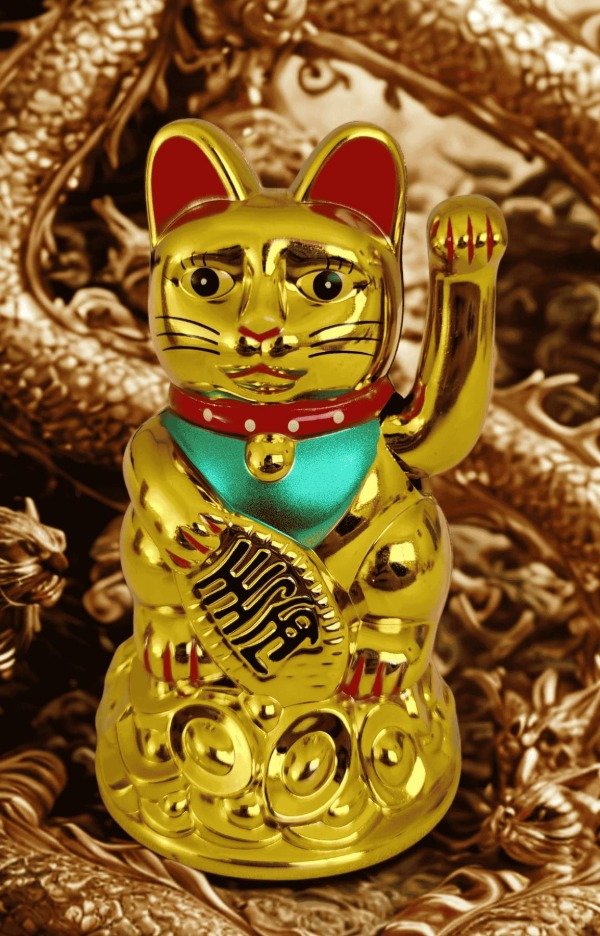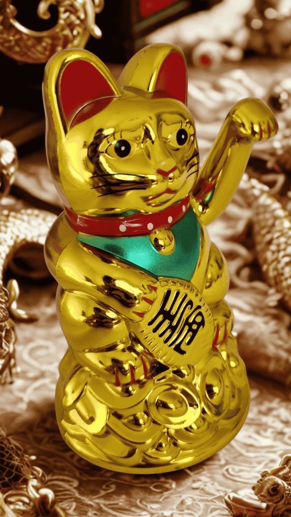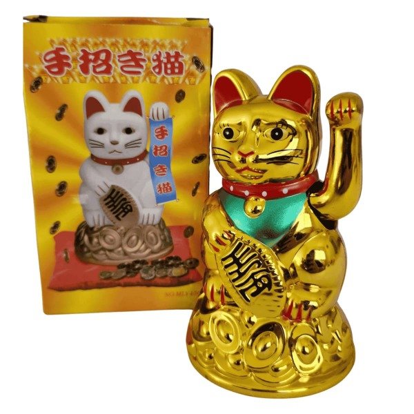El Maneki Neko Dorado, también conocido como Gato de la Suerte, es un clásico amuleto japonés asociado a la prosperidad, la buena fortuna y el éxito en los negocios.
