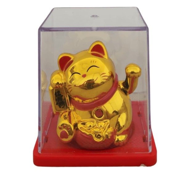 Mini Maneki Neko Solar Gato De La Fortuna Dorado