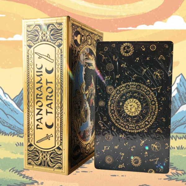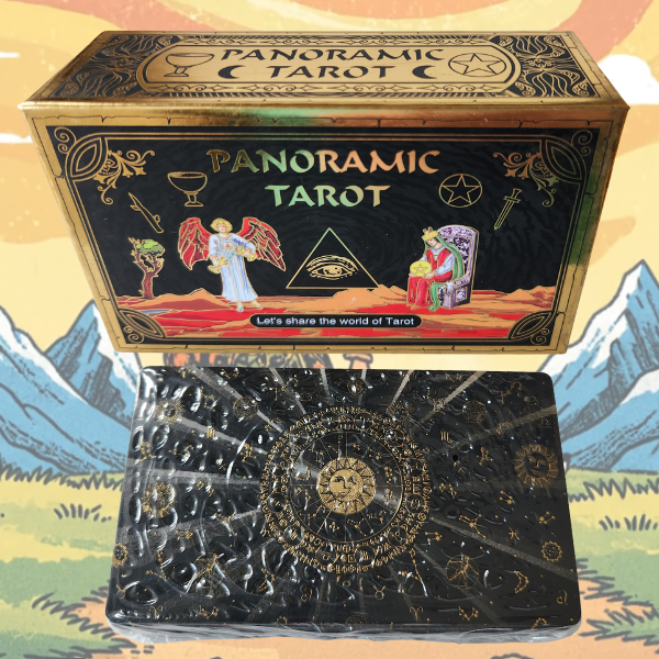 El Panoramic Tarot es una baraja única que presenta cada carta en formato apaisado, ofreciendo una visión ampliada de los arcanos y revelando detalles que en la versión tradicional pasan desapercibidos. Su diseño horizontal permite una lectura más rica y profunda, ideal para quienes disfrutan del simbolismo del tarot clásico pero buscan una experiencia visual distinta.