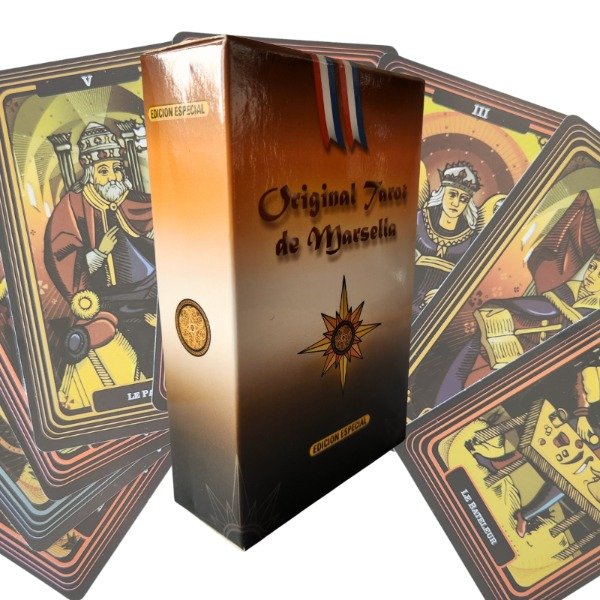 Esta edición especial del Tarot de Marsella reinterpreta el mazo clásico con una estética más profunda y sobria. Los colores, intencionalmente más oscuros y contrastados, aportan un aire antiguo y ritual que acentúa la fuerza simbólica de cada arcano. Es una propuesta ideal tanto para coleccionistas como para quienes aman la lectura tradicional del Marsella, pero buscan una versión con más carácter visual.