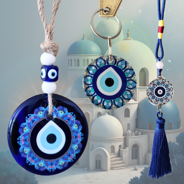 El Combo Triple Protección reúne tres piezas clásicas del simbolismo mediterráneo, diseñadas para acompañarte en tu casa, en tu auto y en tu día a día. Cada artículo está elaborado en vidrio, el material tradicional con el que se fabrican los nazar desde hace más de 3.000 años, según las técnicas heredadas desde la antigua Mesopotamia y extendidas luego por Grecia y Turquía.