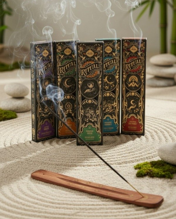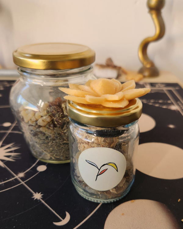 Encendé tu vela dorada, prendé el carbón del frasquito ecléctico con tus hierbas rituales, y hacé pasar tu mazo por el humo lento y fragante.